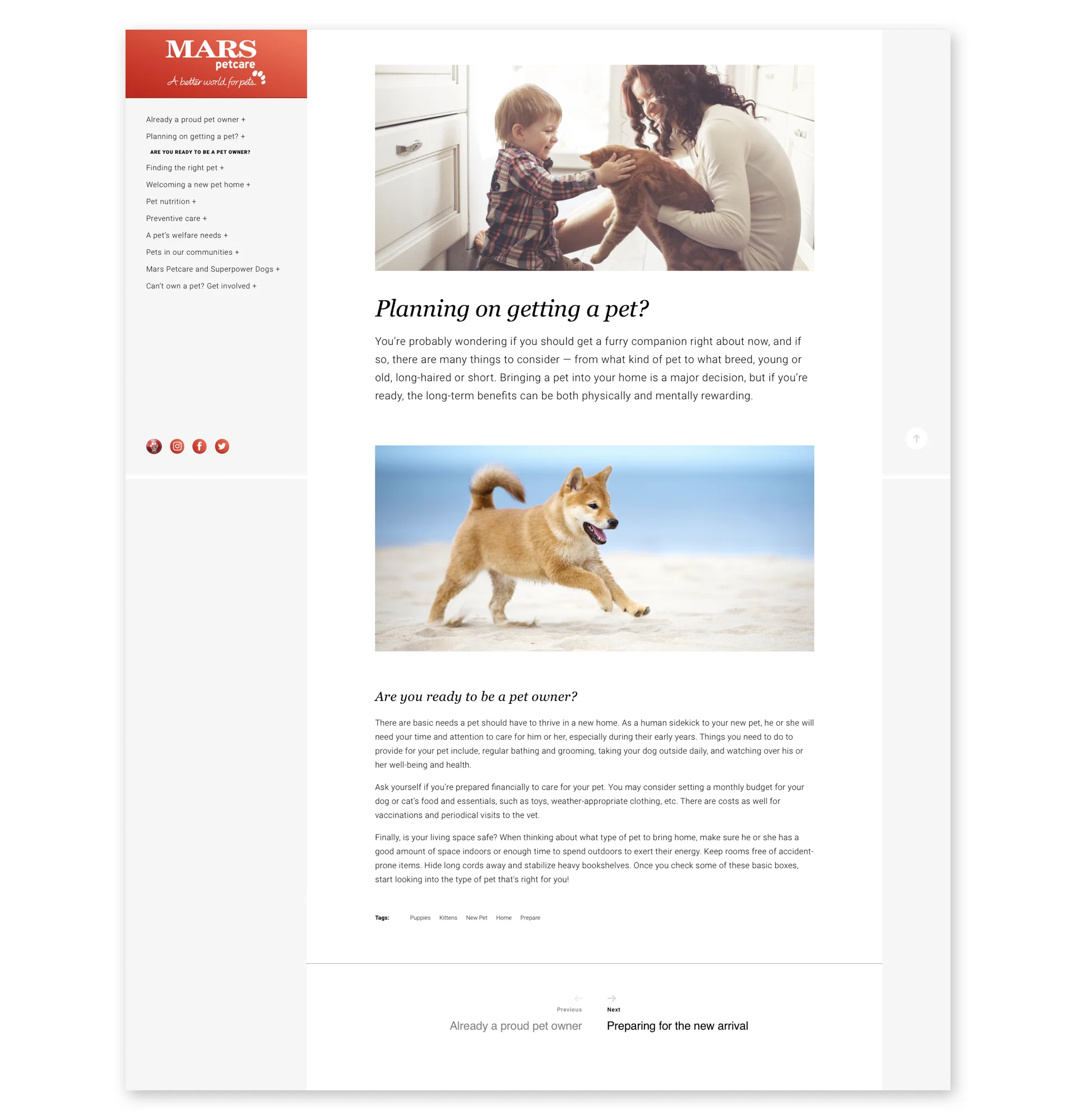 Solution: In response to this, Mars Inc. a global manufacturer of pet food and provider of animal care services, developed a 50-page scientific guide that synthesizes years of research on responsible pet ownership.